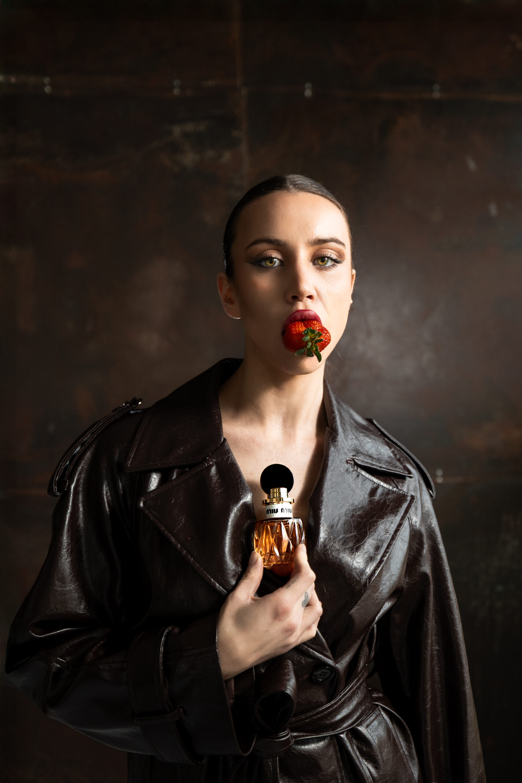 We didn’t have time to overthink, as we operated entirely off instinct. The strawberries weren’t only a prominent note in the scents composition, but they exemplified the the bold, indulgent, richness that is associated with a luxury brand like Miu Miu.